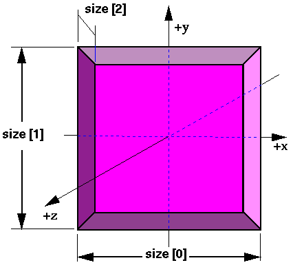 The bboxCenter and bboxSize fields specify a bounding box that encloses the Transform's children. This is a hint that may be used for optimization purposes. If the specified bounding box is smaller than the actual bounding box of the children at any time, then the results are undefined. A default bboxSize value, (-1 -1 -1), implies that the bounding box is not specified and if needed must be calculated by the browser. See "Concepts - Bounding Boxes" for a description of the bboxCenter and bboxSize fields.